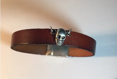"Hanging Skull" Brown Leather Strap with Silver Metal "Hanging Skull" and Magnetic Clasp
