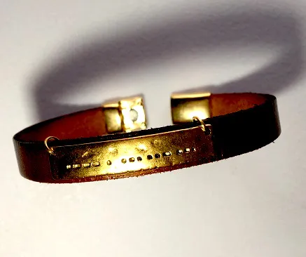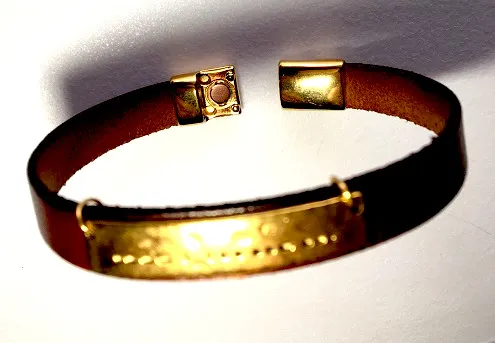 "Jesus" in Morse Code on Brown Leather Strap with matching gold Magnetic Clasp
